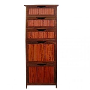 - The 5-drawer chest has a warm natural finish and the drawers have detailed bamboo drawer fronts.